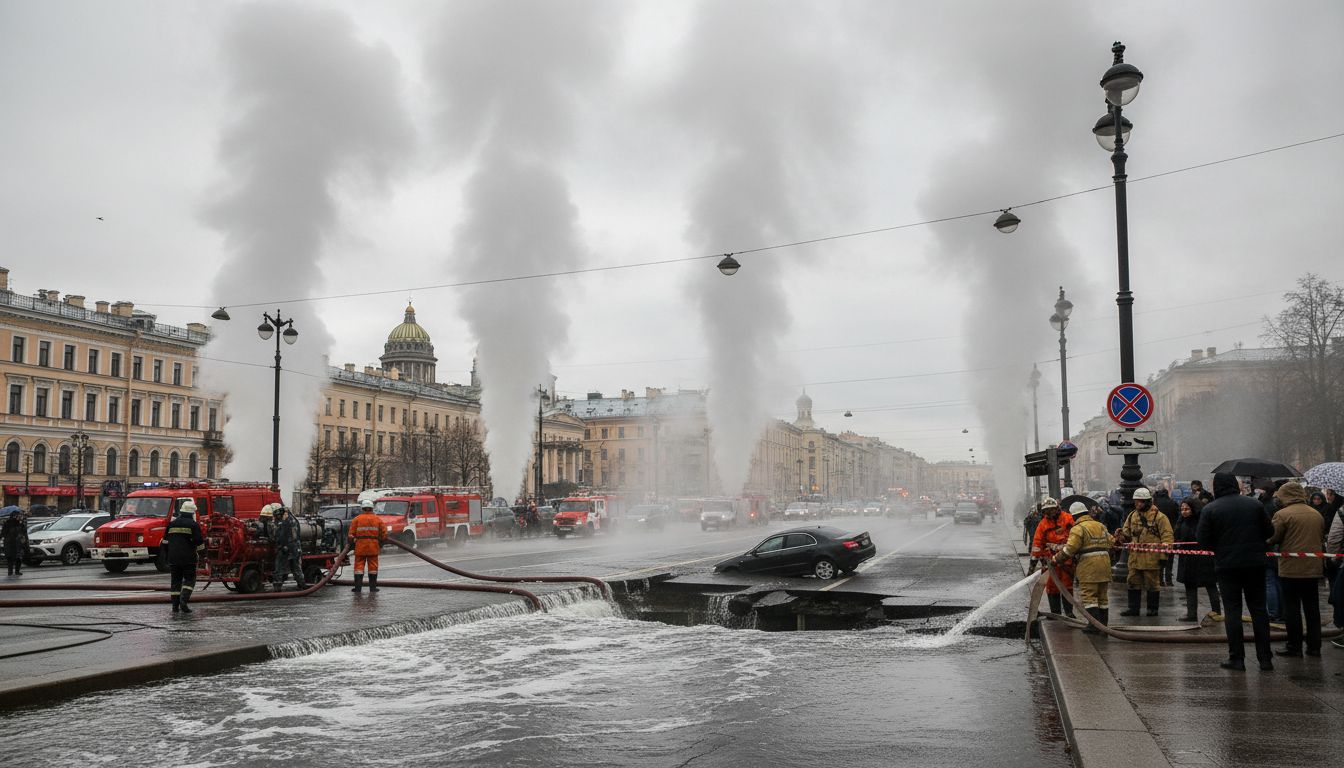 Машины начали проваливаться под землю из-за коммунальной аварии в центре Петербурга