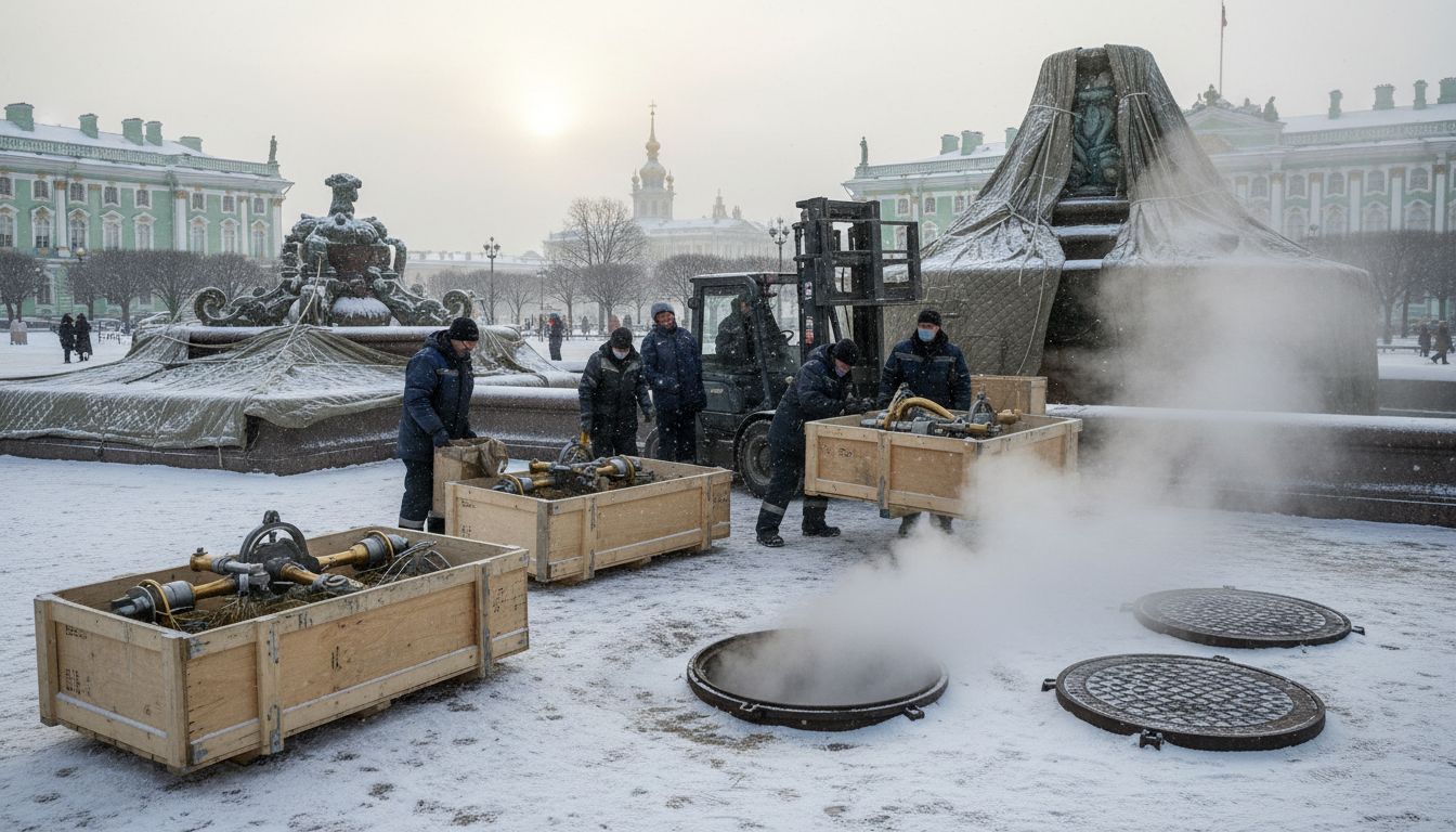 Специалисты подготовили городские фонтаны к холодам: слили воду, укутали оборудование и настроили отопление