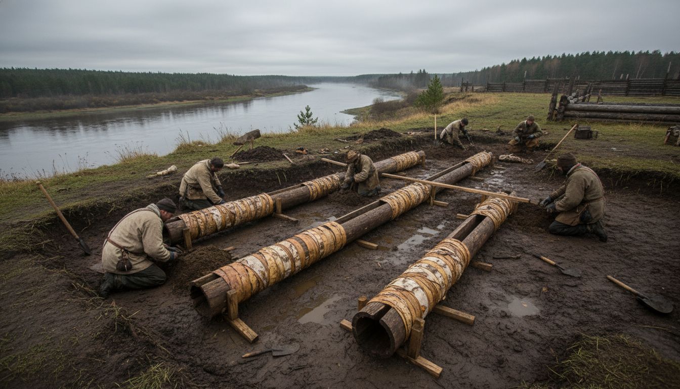 Археологи обнаружили 80 метров деревянных труб XVII века на Охтинском мысе
