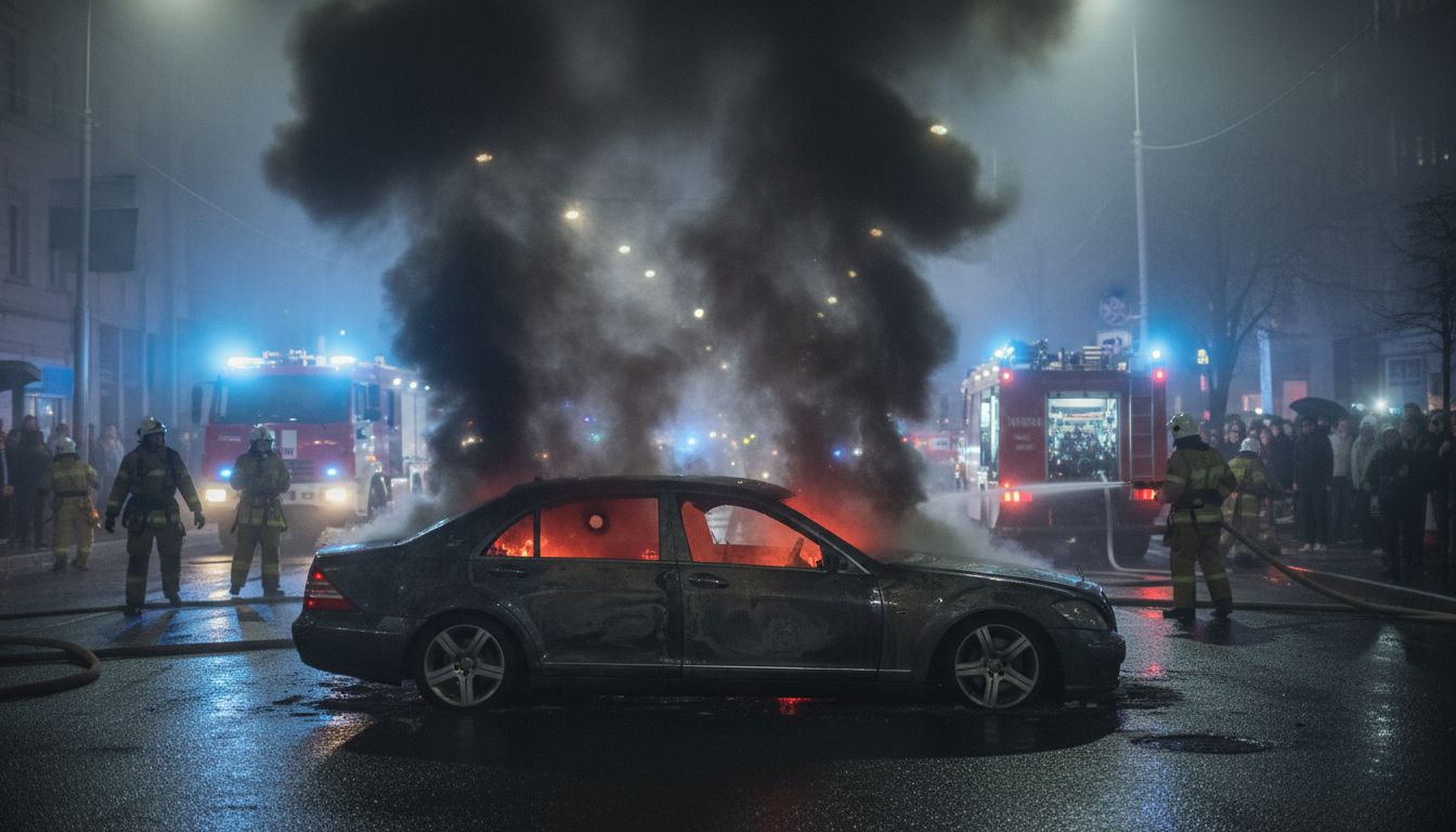 Люксовый автомобиль полностью уничтожен огнём, полиция проверяет версию поджога