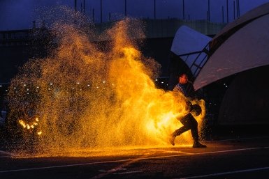 Двое мужчин залили пламя жидкостью и скрылись, их задержали на следующий день
