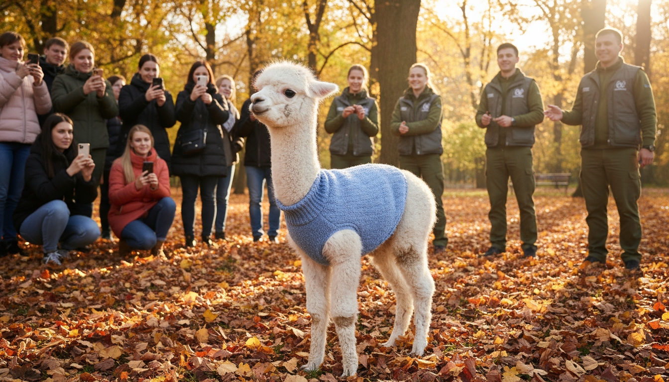 Ранее в тот же день сообщалось, что новорождённую альпаку окрестили именем Черничка. Позже сотрудники парка поделились, что вдохновились первым нарядом малышки и создали для неё ещё несколько модных образов.