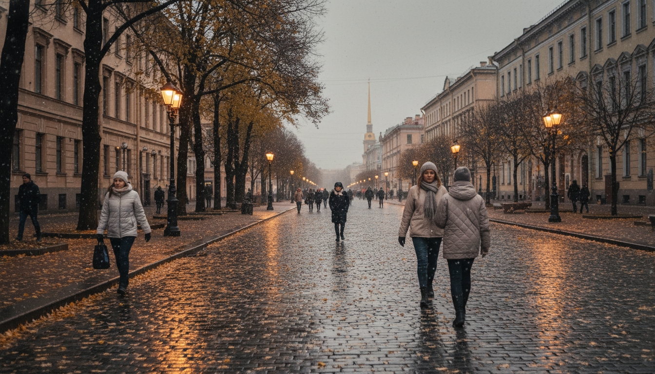 PeterburgMedia, 10 ноября 2025. 14 ноября в Санкт-Петербурге ожидается первый мокрый снег, сообщили синоптики. До этого в городе сохранится тёплая погода: температура воздуха в ближайшие дни будет подниматься до +8 градусов.