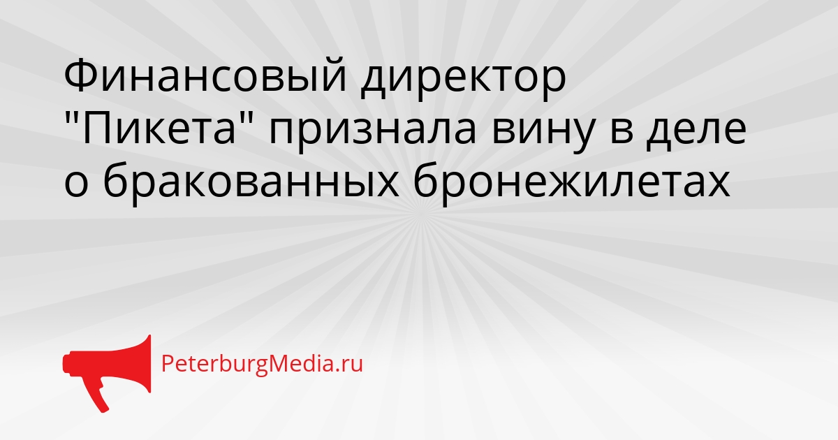 PeterburgMedia, 12 ноября 2025. Финансовый директор ГК «Пикет» Виктория Антонова признала вину по делу о хищении при поставках бракованных бронежилетов Министерству обороны. Об этом сообщили в Мещанском суде Москвы. По имеющимся данным, Антонова выразила раскаяние. Второй фигурант дела — глава службы безопасности компании Михаил К. заявил, что даст показания позже. Следующее заседание по этому делу назначено на 19 ноября в 15:00 по московскому времени. Ранее гендиректора ГК «Пикет» Андрея Е. приговорили к восьми годам колонии за поставку некачественных бронежилетов в Минобороны.