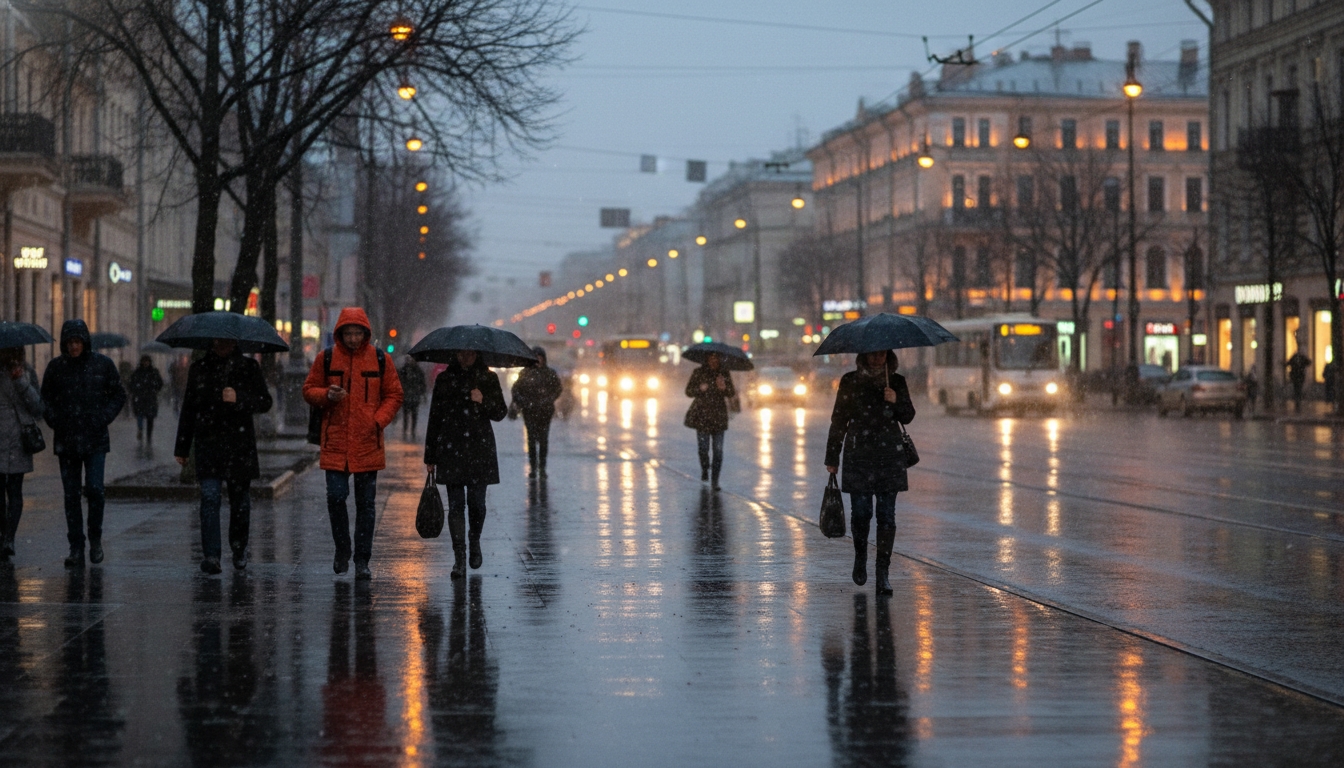 PeterburgMedia, 13 ноября 2025. В Петербурге в ночь на 14 ноября ожидаются первые снежинки вперемешку с дождём. Уже к выходным в городе может установиться устойчивый снежный покров.