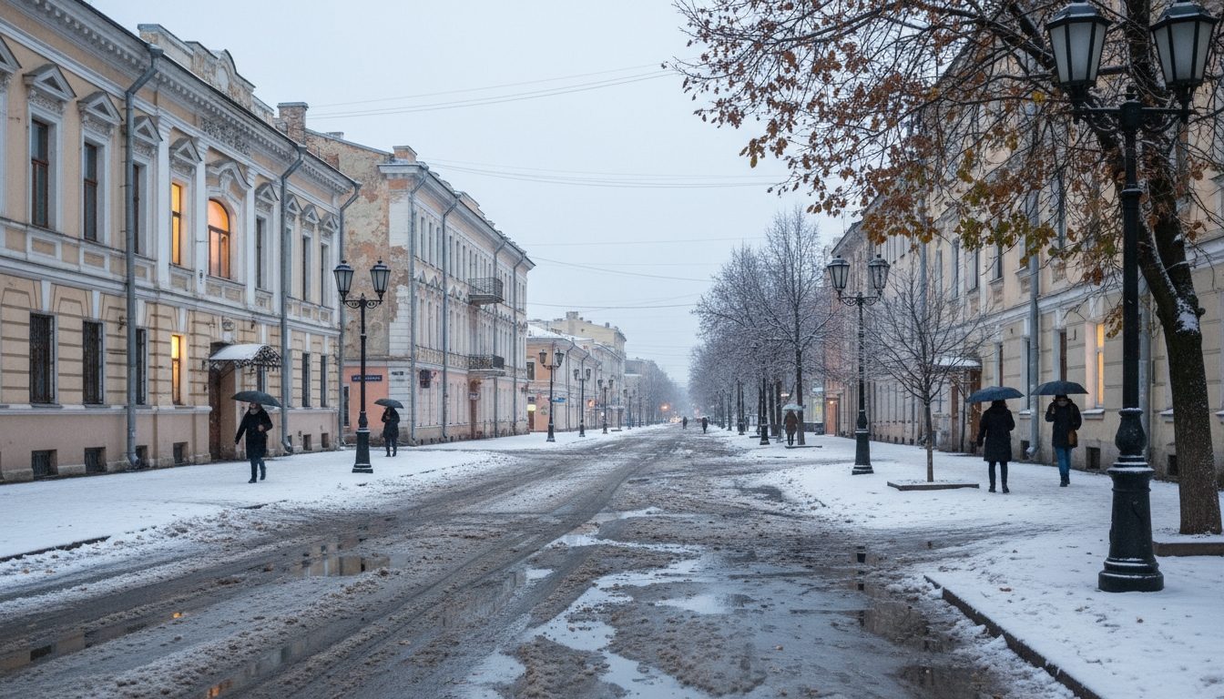 Ночью в городе резко похолодало на фоне сильного дождя, который сменился мокрым снегом. По прогнозу синоптика Михаила Л., в течение дня ожидается температура от +2 до +4 градусов, пасмурная погода, осадки и местами гололедица.