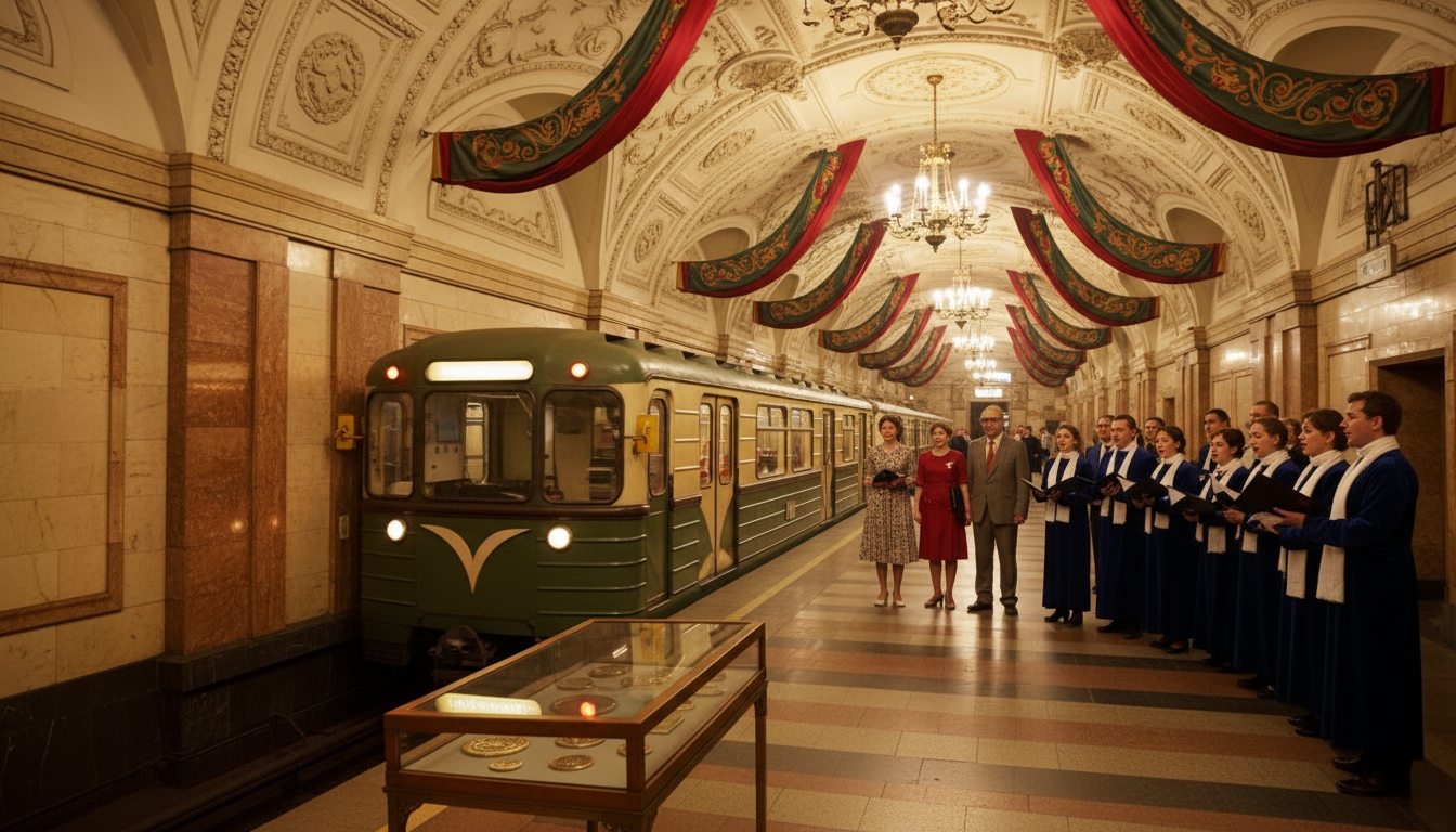PeterburgMedia, 15 ноября 2025. 15 ноября 2025 года Петербург отмечает 70-летие метрополитена. Торжества проходят на станции «Площадь Восстания», которая была одной из первых запущена в 1955 году. Утром здесь прошла церемония гашения памятного жетона и выступление хора метрополитена. В 16:30 на станцию должен прибыть отреставрированный поезд из четырёх вагонов 1960-х годов — именно такие составы ходили на открытии метро.
