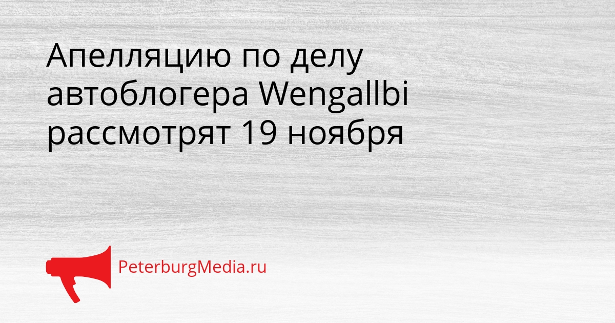 PeterburgMedia, 19 ноября 2025. Мосгорсуд 19 ноября в 12:00 рассмотрит апелляционную жалобу на приговор автоблогеру Wengallbi, известному как Ахмед А. Его осудили за покушение на дачу взятки сотруднику дорожно-патрульной службы. Ранее суд приговорил Ахмеда А. к трём годам лишения свободы и штрафу в один миллион рублей по статье 30, 291 УК РФ («Покушение на дачу взятки должностному лицу»). Как сообщили в пресс-службе Мосгорсуда, жалобы подали как защита осуждённого, так и прокуратура.