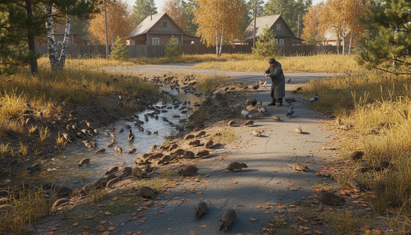 PeterburgMedia, 19 ноября 2025. В Западном Мурино на перекрёстке Воронцовского и Петровского проспектов жители обнаружили массовое появление крыс вдоль берегов Лесного ручья. Грызуны выкопали десятки нор и без страха выбегают из укрытий, когда местные жители приходят покормить уток. По сообщениям очевидцев, крысы не только бегают по улицам, но и плавают в ручье.