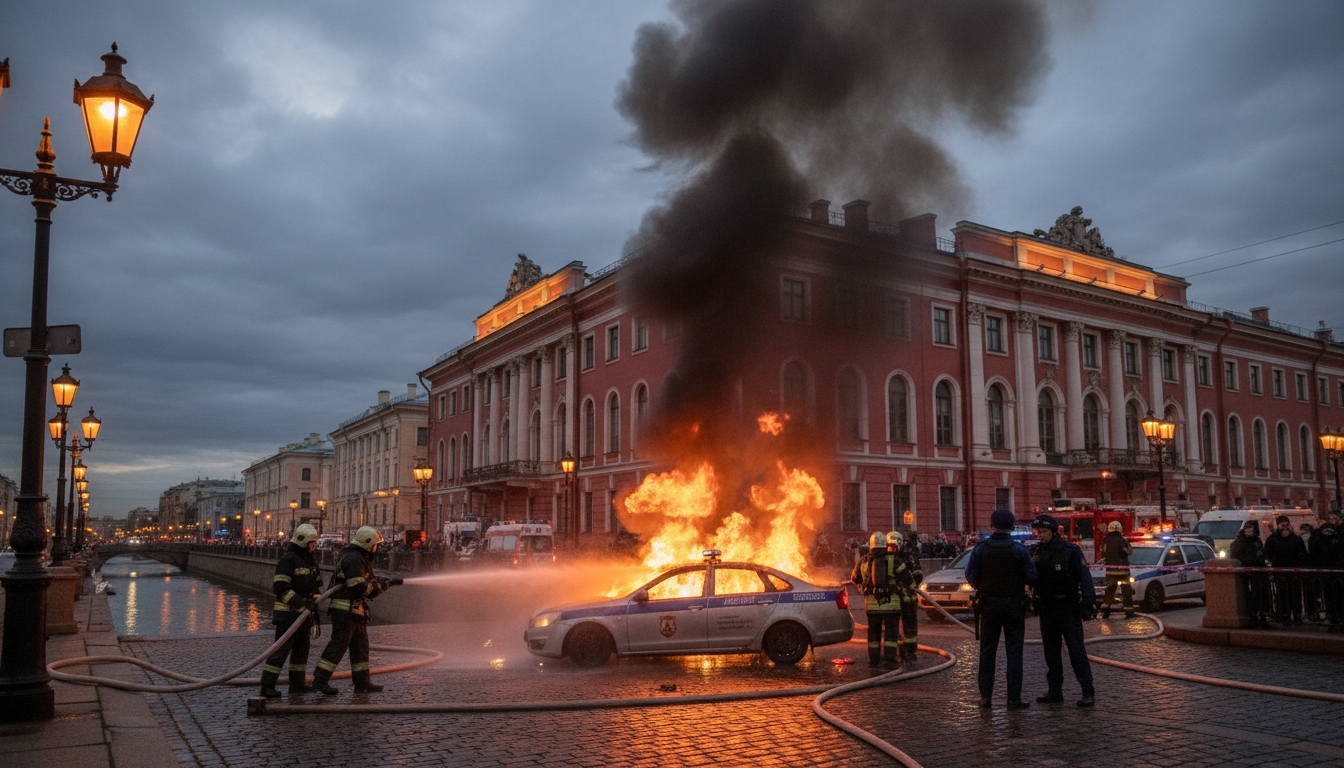 PeterburgMedia, 19 ноября 2025. В Санкт-Петербурге возбуждено уголовное дело по факту террористического акта после того, как 15-летний гражданин Узбекистана поджёг патрульный автомобиль ДПС у отдела Госавтоинспекции в Адмиралтейском районе. Инцидент произошёл 19 ноября 2025 года около 11:49 на набережной Обводного канала, дом 205.