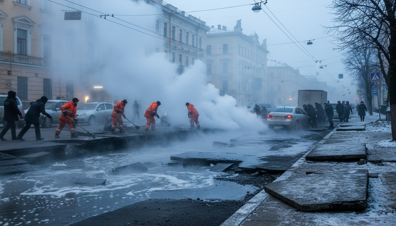 PeterburgMedia, 20 ноября 2025. На улице Бассейной в Санкт-Петербурге устранили прорыв теплотрассы, из-за которого на проезжей части образовался мощный разлив кипятка. Авария произошла 19 ноября 2025 года в районе дома 23, движение по улице временно перекрыли.
