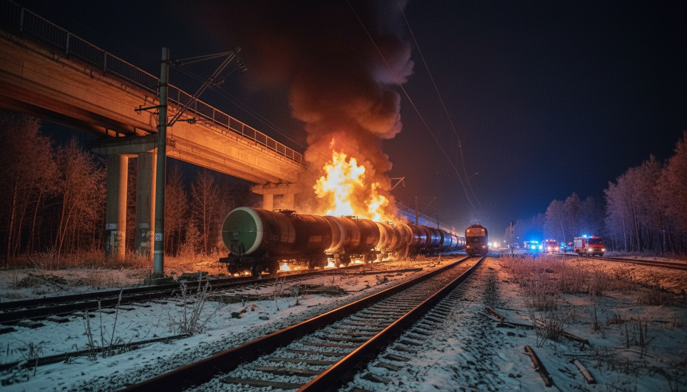 PeterburgMedia, 20 ноября 2025. На границе Свердловской области и Пермского края вечером 19 ноября загорелись вагоны-цистерны с газовым конденсатом. Площадь возгорания составила 1000 квадратных метров, пострадавших нет. Из-за ЧП задерживаются 14 поездов, включая четыре, связанных с Санкт-Петербургом.