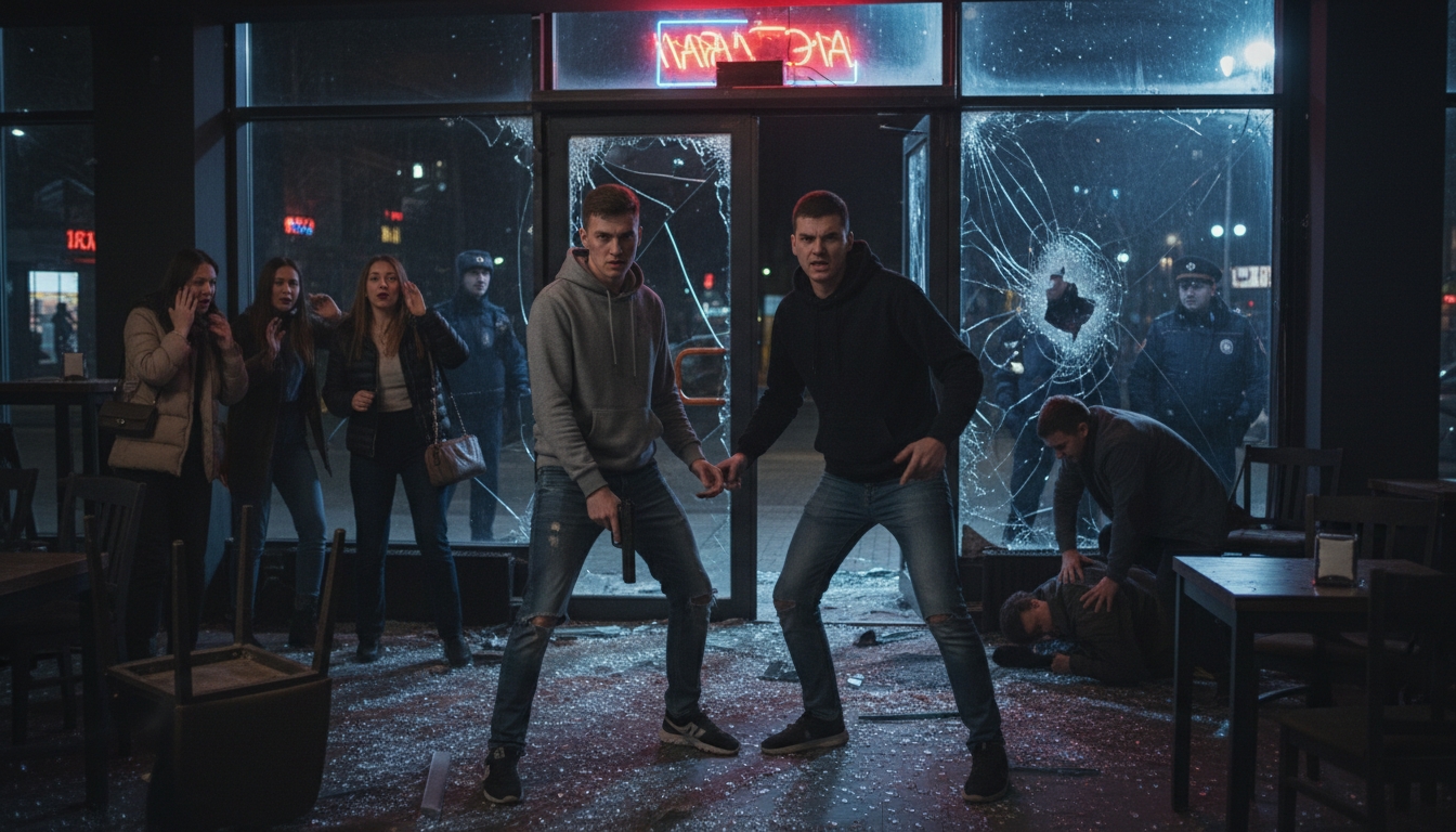 В ходе конфликта в заведении молодые люди несколько раз выстрелили из пневматического пистолета в руки и ноги двум посетителям, причинив им ушибы и гематомы. Позже, уже на улице, они избили ещё одного человека и дважды выстрелили ему в голову и туловище.