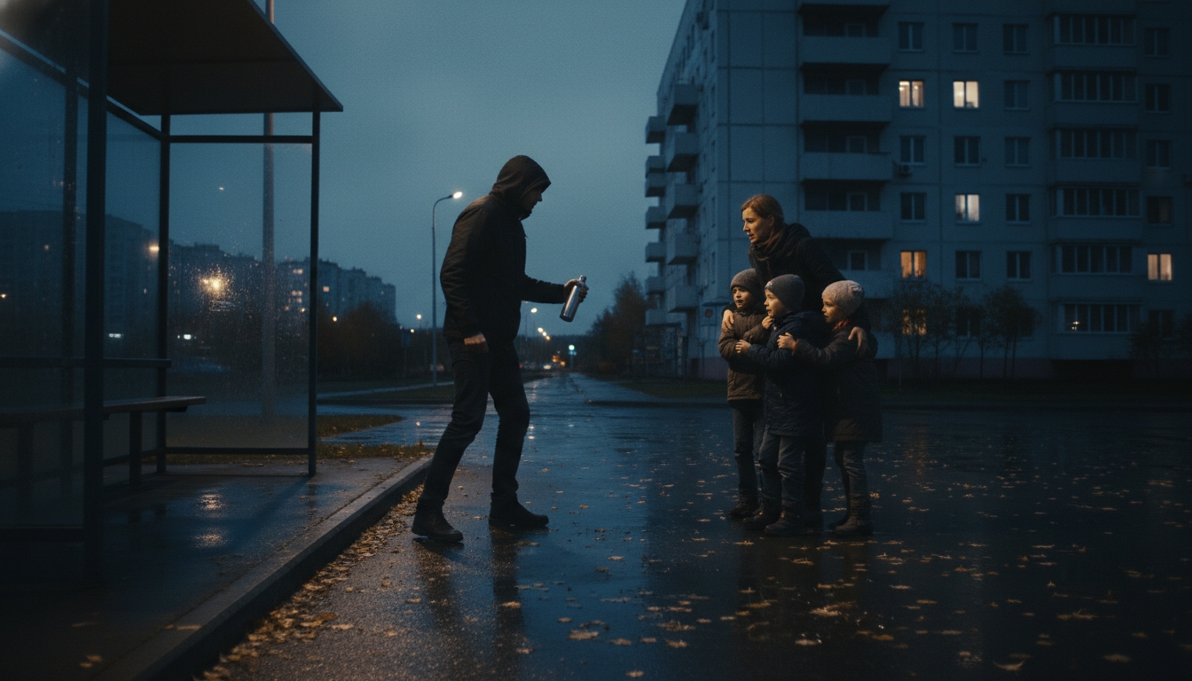 Валерий М. обвиняется в нападении с перцовым баллончиком на остановке «Поликлиника» у дома 7 по проспекту Королёва 18 октября 2025 года около 21:05. По данным следствия, он распылил раздражающее вещество в лицо двум малолетним детям и их матери. У пострадавших диагностированы химические ожоги конъюнктивы второй степени, а также причинены физическая боль и моральные страдания. Валерий М. задержан 27 ноября, частично признал вину, но возражал против заключения под стражу. 28 ноября Приморский районный суд избрал ему меру пресечения в виде содержания в СИЗО до 20 января 2026 года.