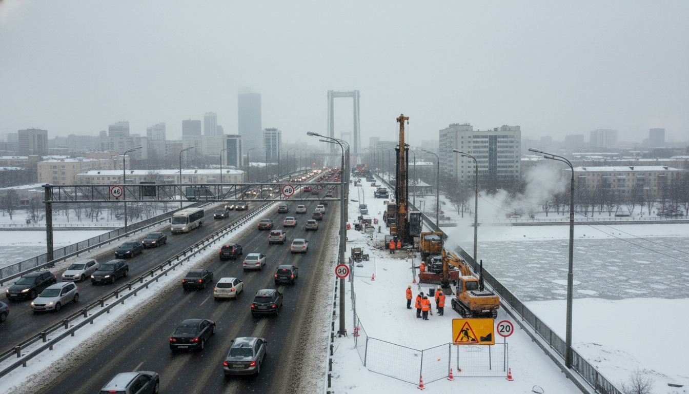 Полностью прекратится движение по двум полосам. На остальных полосах будет действовать ограничение скорости — не более 40 километров в час. Это связано с восстановительными работами на мосту.