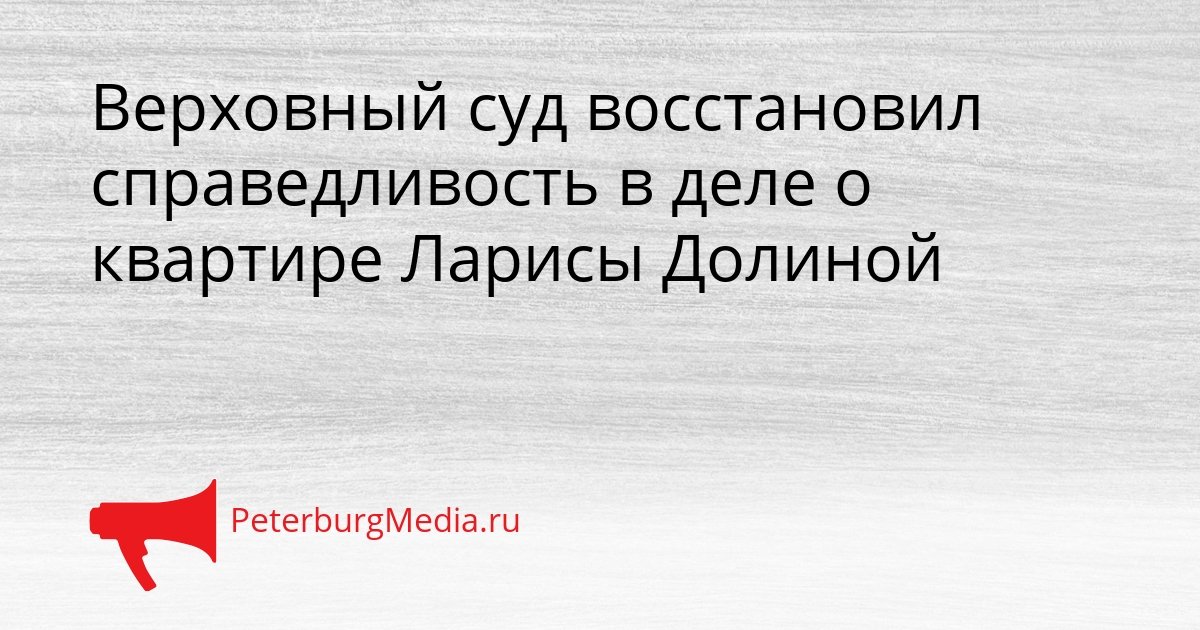 PeterburgMedia, 16 декабря. Верховный суд России отменил решения трёх нижестоящих судов, признававших сделку по продаже квартиры певицы Ларисы Долиной недействительной, и направил дело на новое рассмотрение. Об этом сообщила адвокат Полины Лурье Светлана Свириденко.