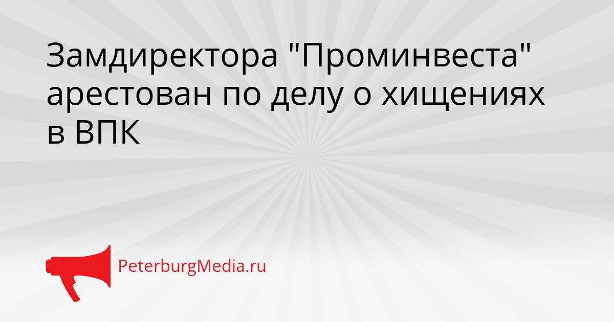 PeterburgMedia, 23 декабря. В Московской области арестовали заместителя генерального директора компании «Проминвест» Андрея Г. по делу о хищениях при поставках продукции для военно-промышленного комплекса. Суд избрал меру пресечения на два месяца.