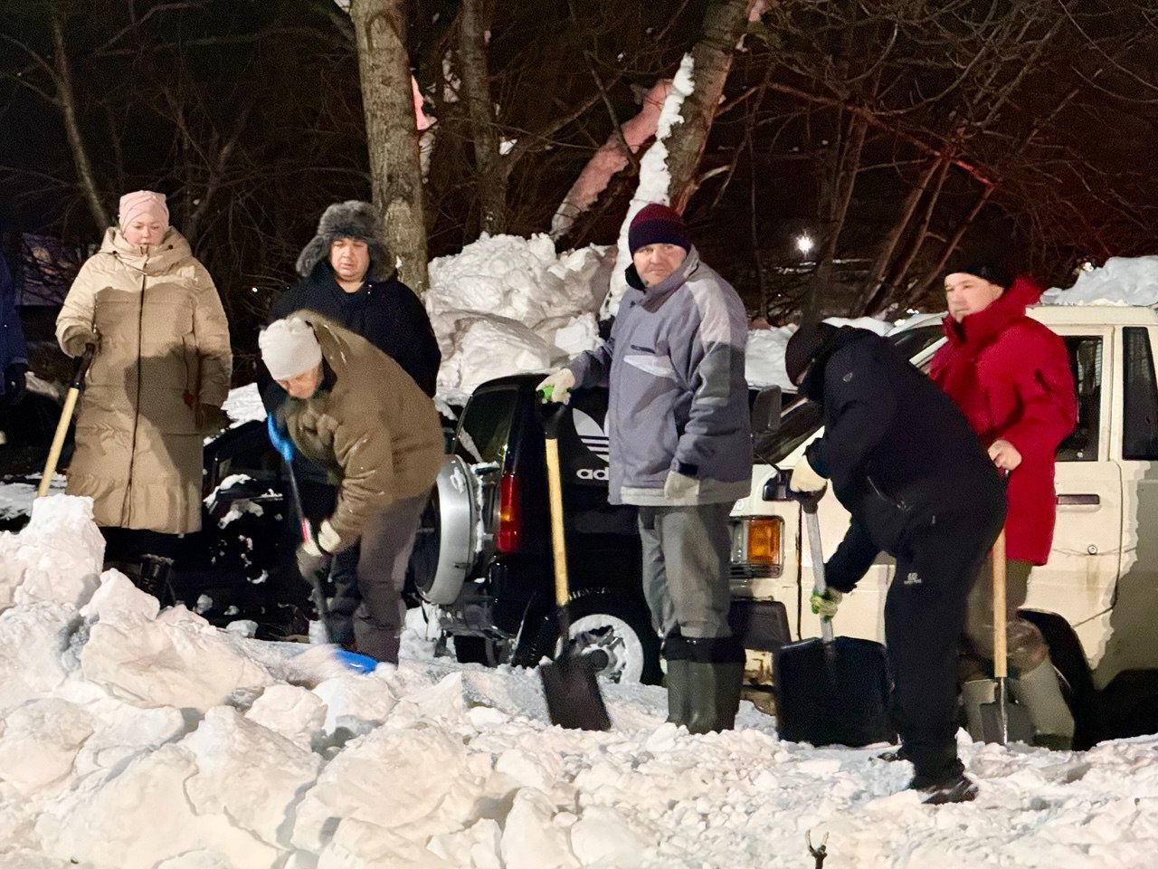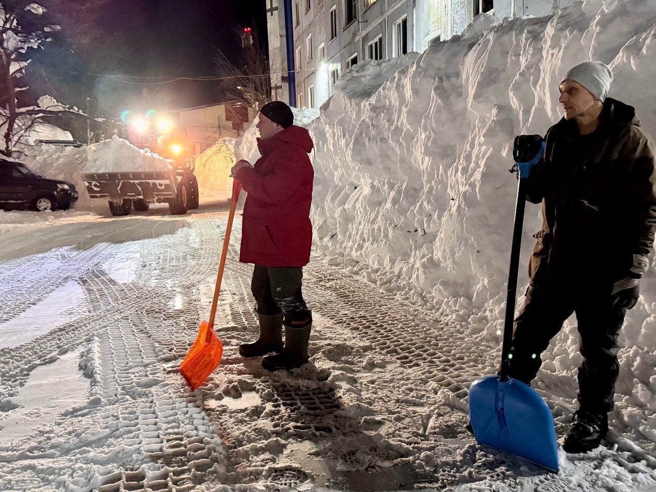 Тут уж выбирать не приходится — если кто-то готов чистить в это время, нужно одеваться потеплее, брать все лопаты и идти помогать.