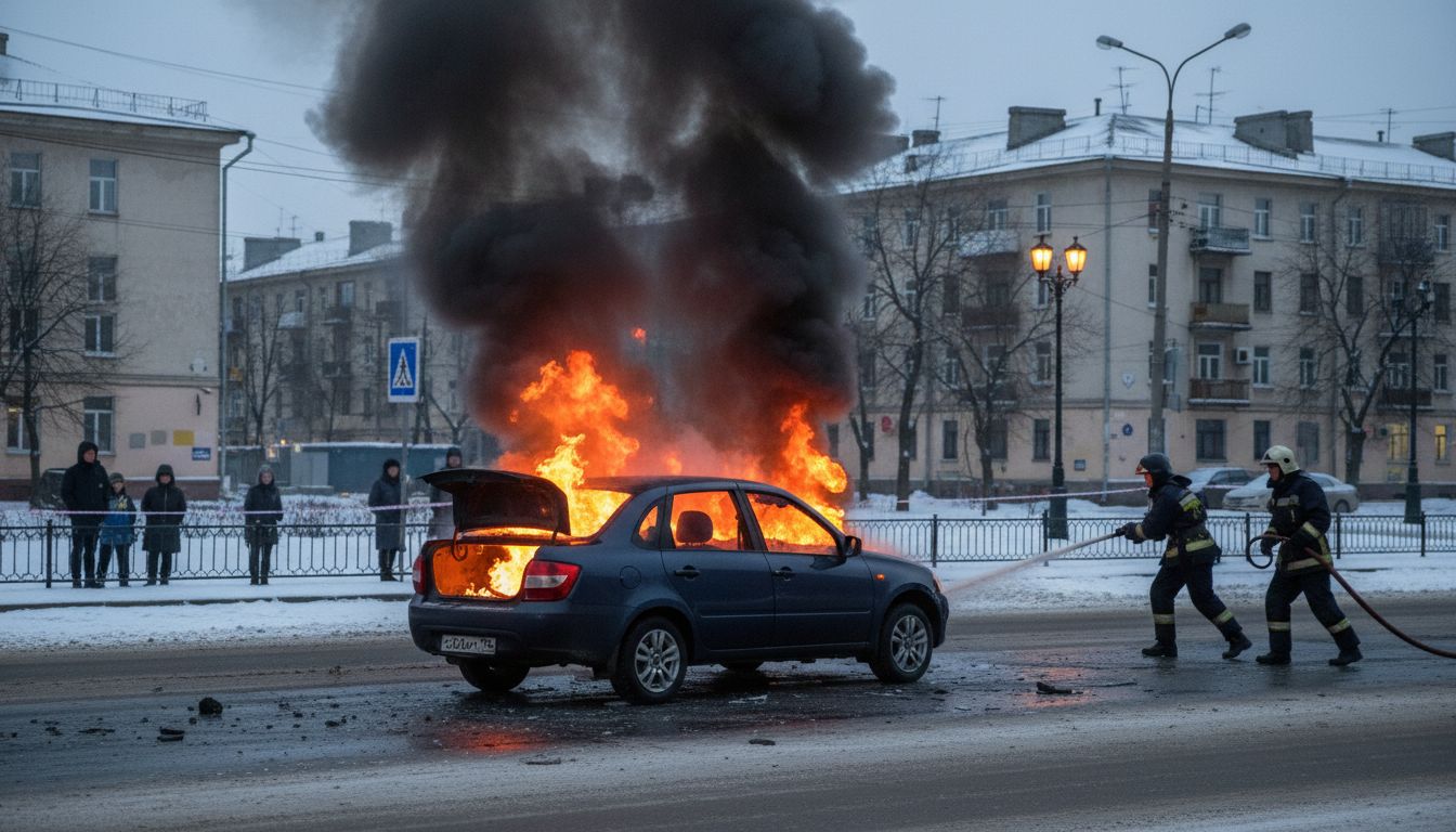 В Московском районе Петербурга автомобиль загорелся после хлопка газа, пострадал водитель