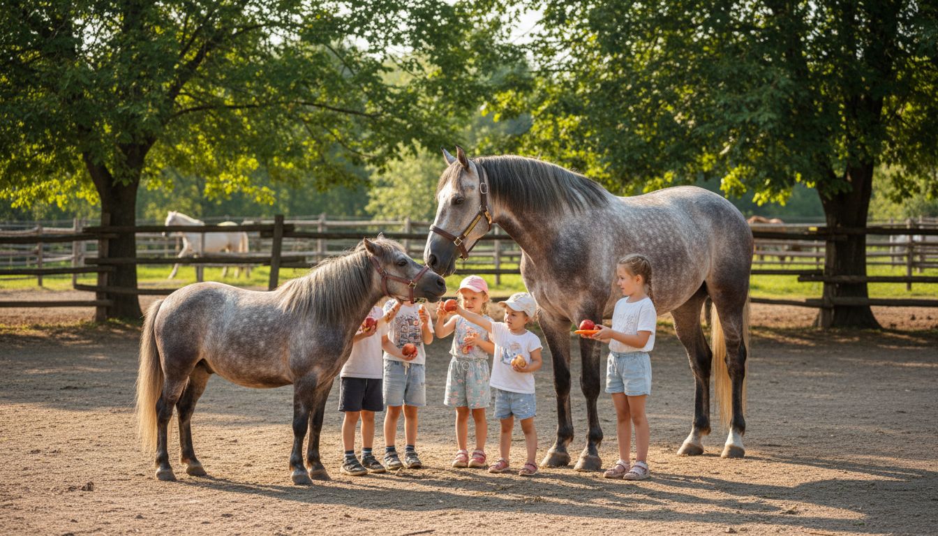 Жеребец Серёжа прибыл из Ленобласти и уже помогает обучать детей верховой езде