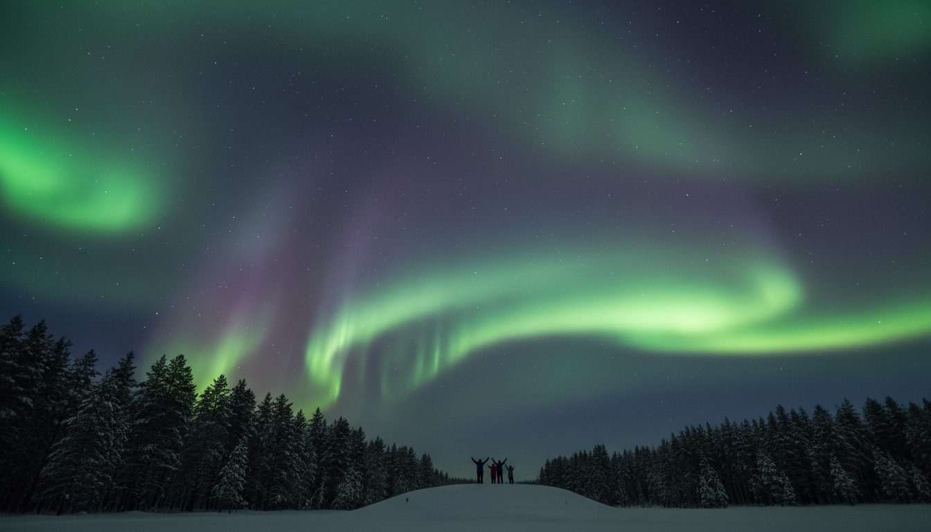 Северное сияние возникает при взаимодействии заряженных частиц солнечного ветра с магнитным полем Земли. Обычно его можно наблюдать в высоких широтах, однако во время магнитных бурь оно иногда становится видимым и в более южных регионах, включая северо-запад России.