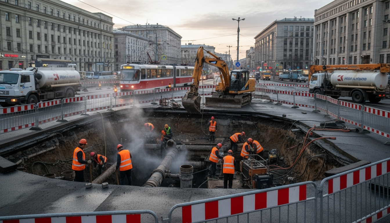 PeterburgMedia, 10 ноября 2025. Сотрудники «Водоканала» завершили восстановление двух повреждённых труб на проспекте Энгельса в Санкт-Петербурге — диаметром 50 и 60 см. Инцидент произошёл в ночь на 9 ноября: из-за повреждения труб сторонней организацией на Светлановской площади образовался провал асфальта, чуть не затянувший проезжавший мимо трамвай.