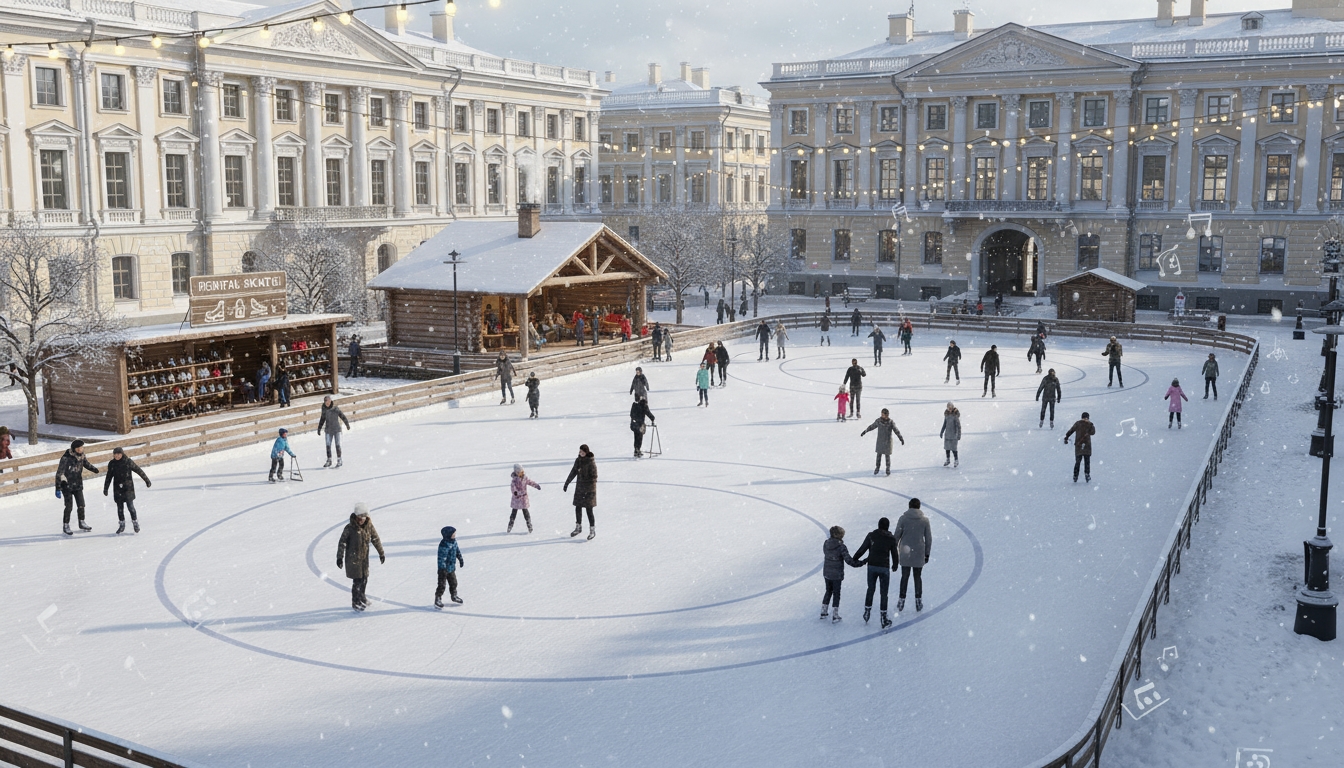 PeterburgMedia, 10 ноября 2025. Каток на Конюшенной площади в Петербурге заработает с 17 декабря. Там можно будет взять коньки напрокат, оставить вещи в бесплатной камере хранения и согреться в зоне отдыха.