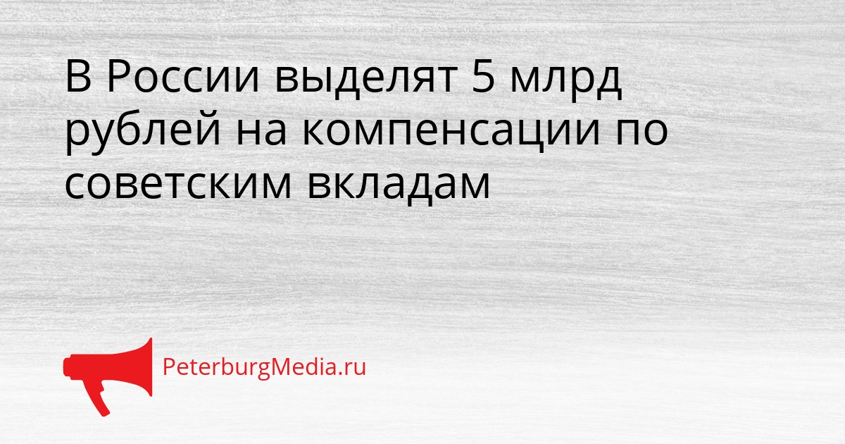 В ближайшие три года в России планируется выделить около 5 миллиардов рублей на компенсации по советским сберегательным вкладам. Выплаты коснутся вкладчиков, имевших счета на июнь 1991 года, а также их наследников и лиц, оплативших похороны владельца вклада.