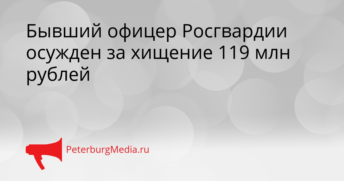 PeterburgMedia, 20 ноября 2025. Бывшего старшего офицера авиационно-технической службы управления специальных видов технического и тылового обеспечения авиации Главного управления авиации Росгвардии Андрея Ч. приговорили к четырем годам колонии общего режима за хищение 119 миллионов рублей. Об этом сообщили в среду.
