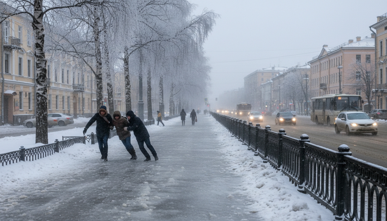 PeterburgMedia, 22 ноября 2025. В Санкт-Петербурге объявлен жёлтый уровень погодной опасности из-за гололедицы и сильного ветра. Предупреждение действует до 13:00 23 ноября.