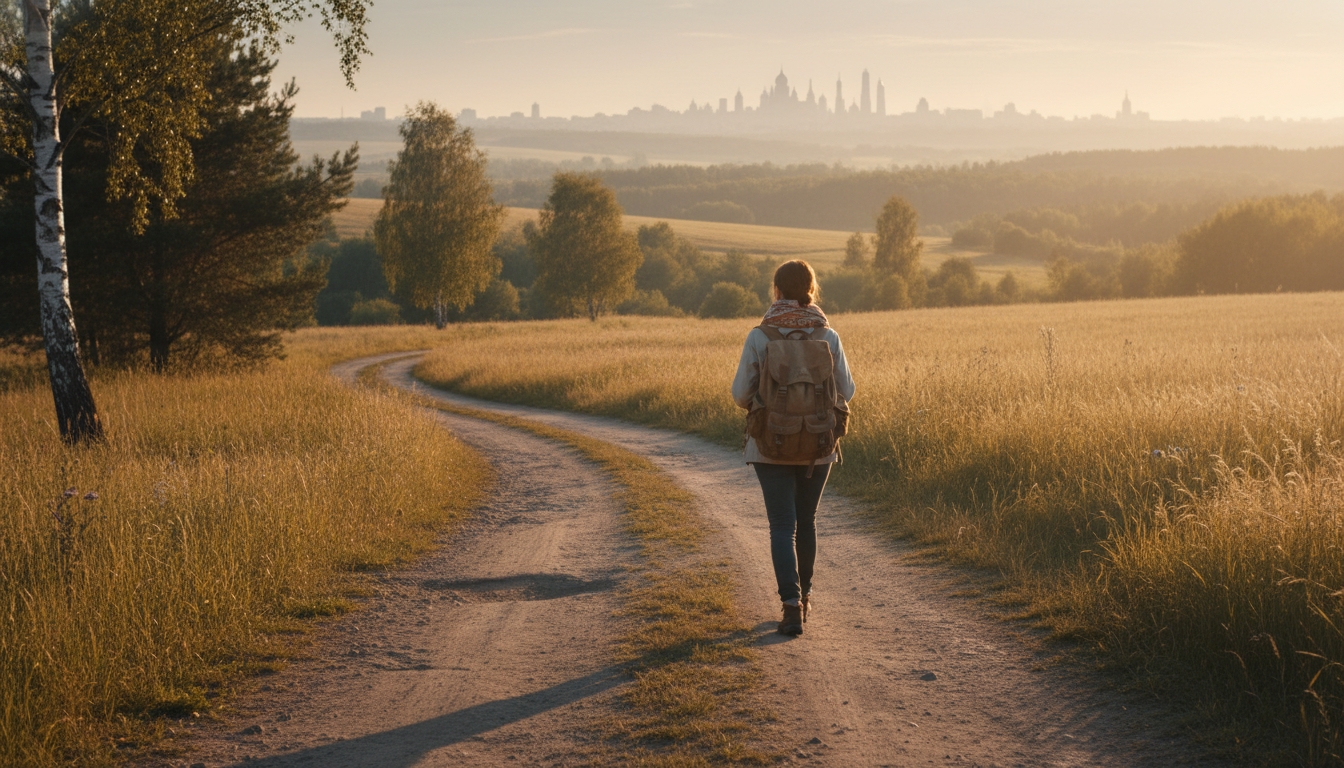 Девушка идёт пешком из Москвы в Петербург