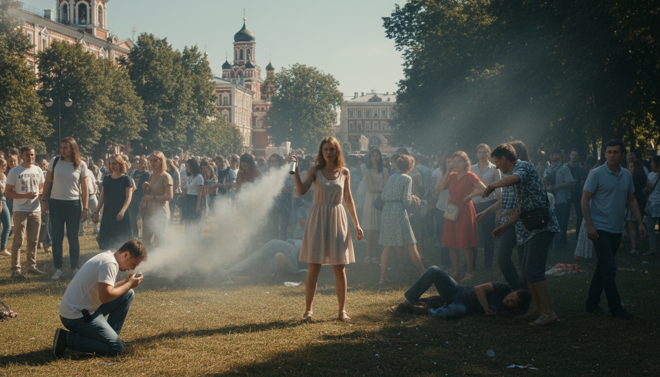 PeterburgMedia, 25 ноября 2025. 24-летняя жительница Сахалинской области распылила перцовый баллончик в толпу зрителей на уличном фестивале в Петербурге, потому что те загораживали ей обзор. В результате трое человек, включая несовершеннолетнего, получили химические ожоги глаз.