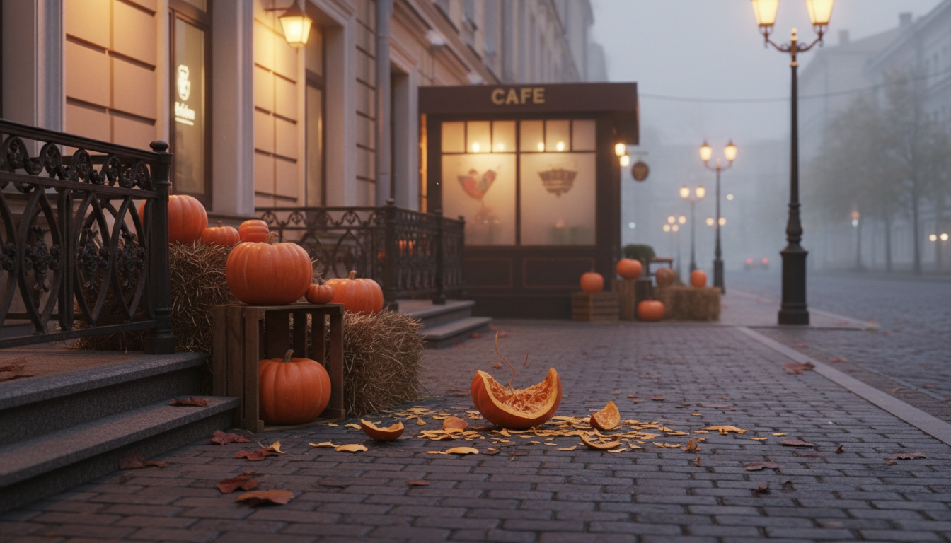 PeterburgMedia, 26 ноября 2025. Неизвестный мужчина разбил декоративные тыквы, установленные возле кафе на улице Мира в Петербурге, и унёс одну из них. Инцидент произошёл вечером 25 ноября. Владелица заведения сообщила, что сразу после закрытия кафе сотрудница прислала ей видео с места происшествия.