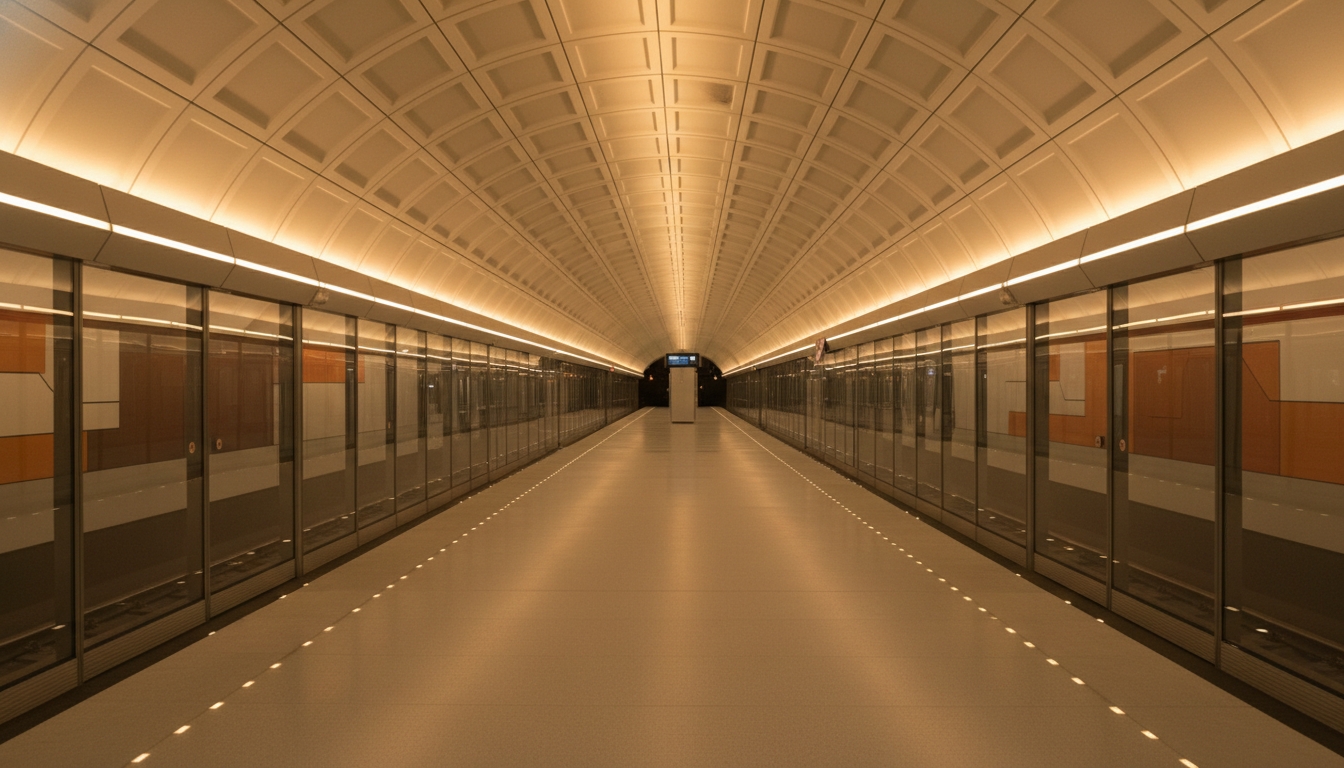 PeterburgMedia, 27 ноября 2025. Петербургжцам представили визуальный облик будущей станции метро «Лиговский проспект–2». Проект предполагает использование платформенных дверей, стеклянных стен и свода с геометрическими формами.