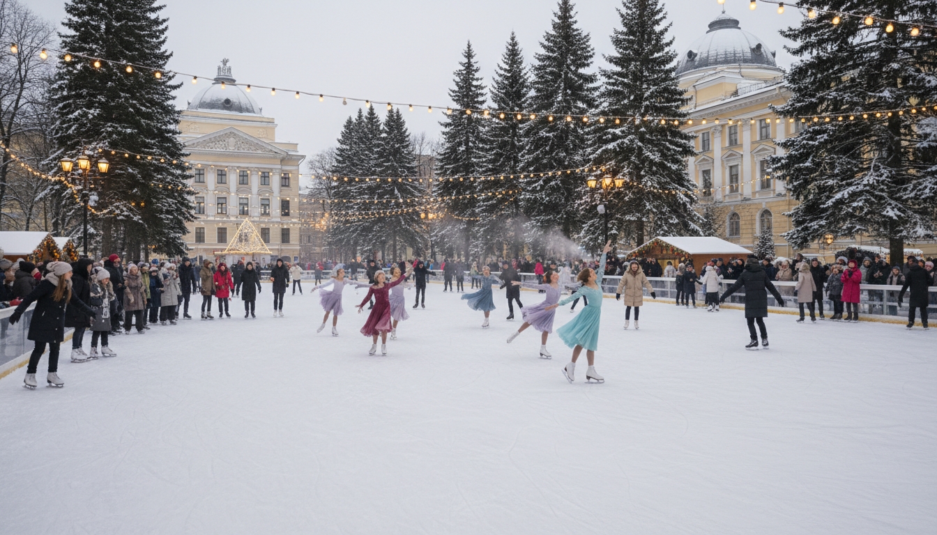 В выходные, 6–7 декабря, на этом катке прошли показы ледового балетного спектакля. Выступления состоялись дважды в день — в 15:30 и 17:30 — с участием артистов государственного балетного театра.