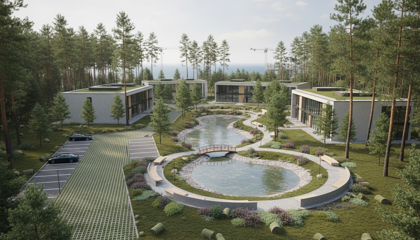 На прилегающей территории обустроят декоративный водоём, зоны отдыха и парковку. Проект направлен на развитие инфраструктуры отдыха и оздоровления в пригородной зоне.