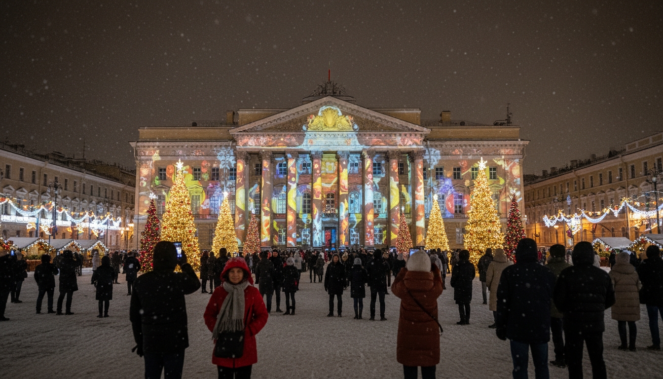 Зрители увидят яркое визуальное представление с праздничными мотивами. Мероприятие станет частью новогодних торжеств в центре города.