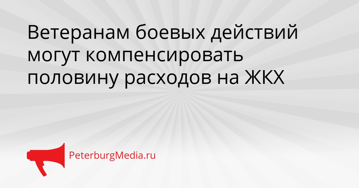PeterburgMedia, 13 декабря. Депутаты от «Справедливой России» внесли в Госдуму законопроект, по которому ветераны боевых действий смогут получать компенсацию в размере 50% от стоимости всех жилищно-коммунальных услуг. Инициатива уже направлена на рассмотрение в нижнюю палату парламента.