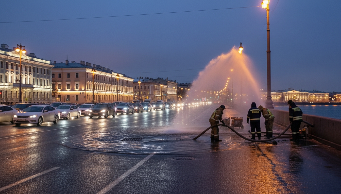 По информации коммунальных служб, в 18:25 специалисты прибыли на место происшествия — Свердловская набережная, 34. Там ведутся работы по локализации вытекания. Вода направляется в систему водоотведения.
