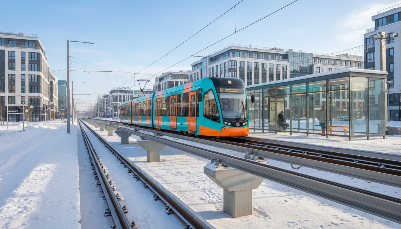 Новая трамвайная линия станет полностью обособленной от остальной сети. Её полная длина составит 21 км с 24 остановками, а завершить строительство планируют к декабрю 2026 года. Уже сейчас идёт обкатка новых бирюзово-оранжевых вагонов, а также завершается возведение депо и остановочных комплексов.