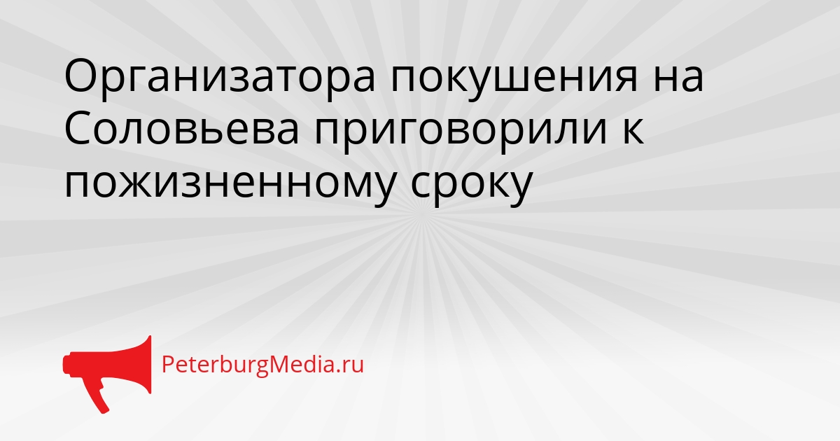 PeterburgMedia, 19 декабря. 2-й Западный окружной военный суд приговорил Андрея П. к пожизненному заключению за организацию покушения на журналиста Владимира Соловьева.