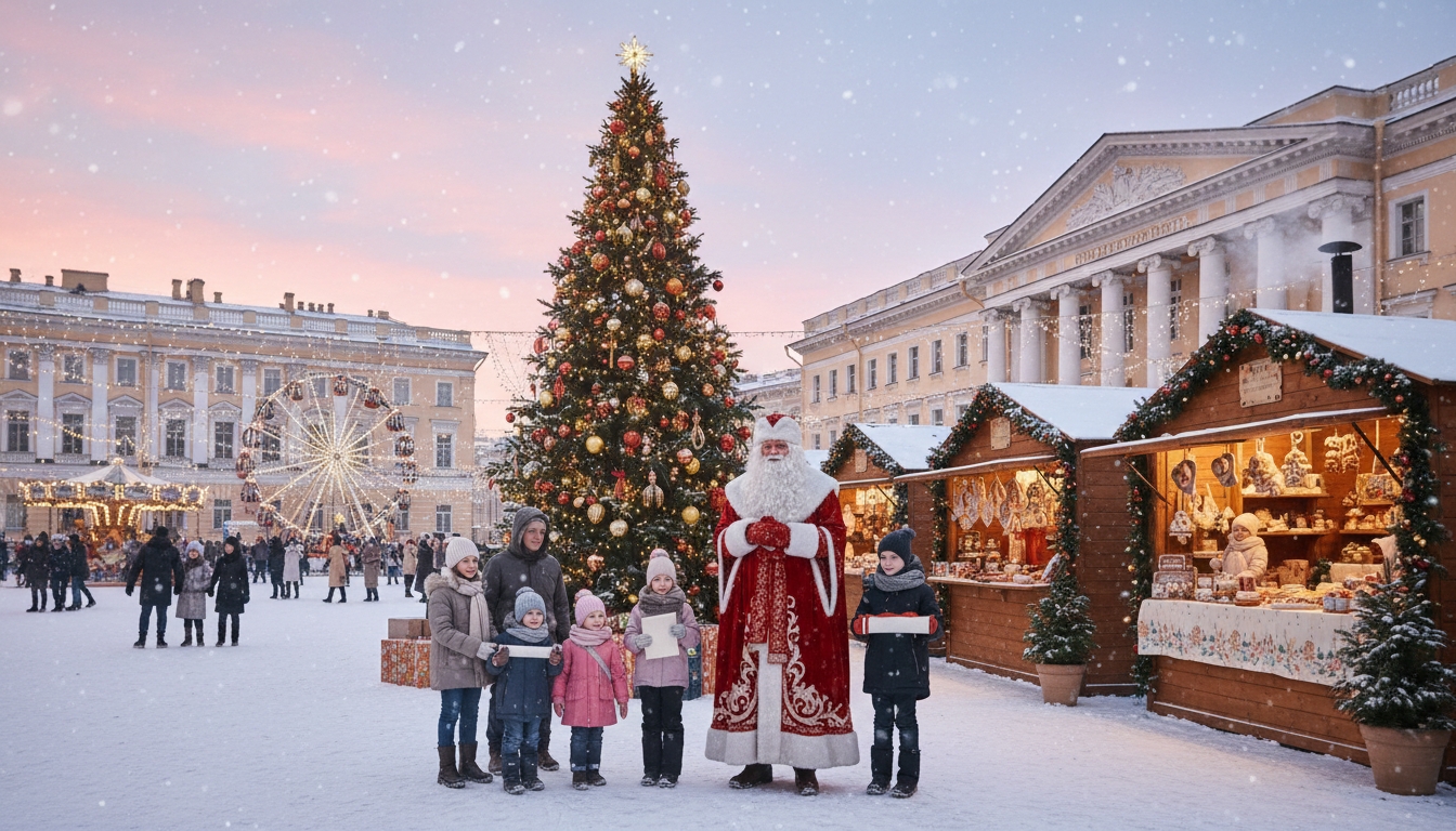 На Дворцовой площади стартовал праздничный сезон: заработали развлечения, ярмарки и пункт сбора подарков для военных