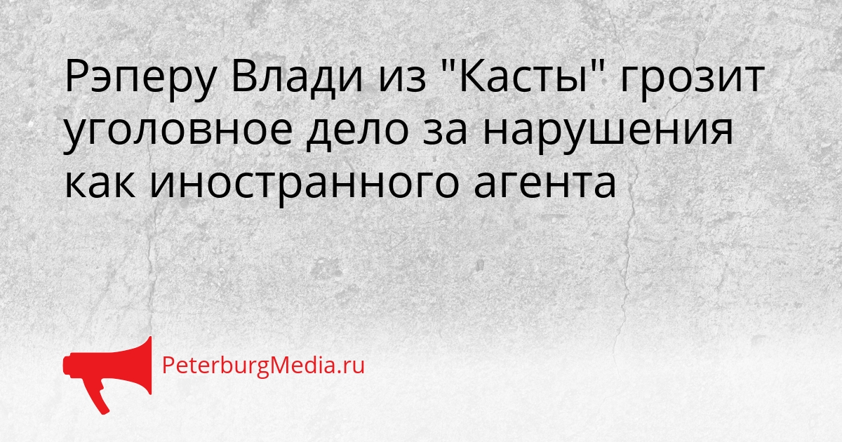 PeterburgMedia, 24 декабря. Рэперу Владиславу Л. (известному как Влади) из группы «Каста», внесенному в реестр иностранных агентов, может быть возбуждено уголовное дело. Об этом сообщил его адвокат Андрей Алешкин.