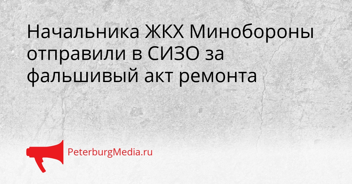 PeterburgMedia, 24 декабря. В Архангельской области бывшего начальника подразделения жилищно-коммунального хозяйства Министерства обороны отправили в СИЗО. По версии следствия, он превысил должностные полномочия, подписав акт приемки ремонта объекта, который на самом деле не был завершен.