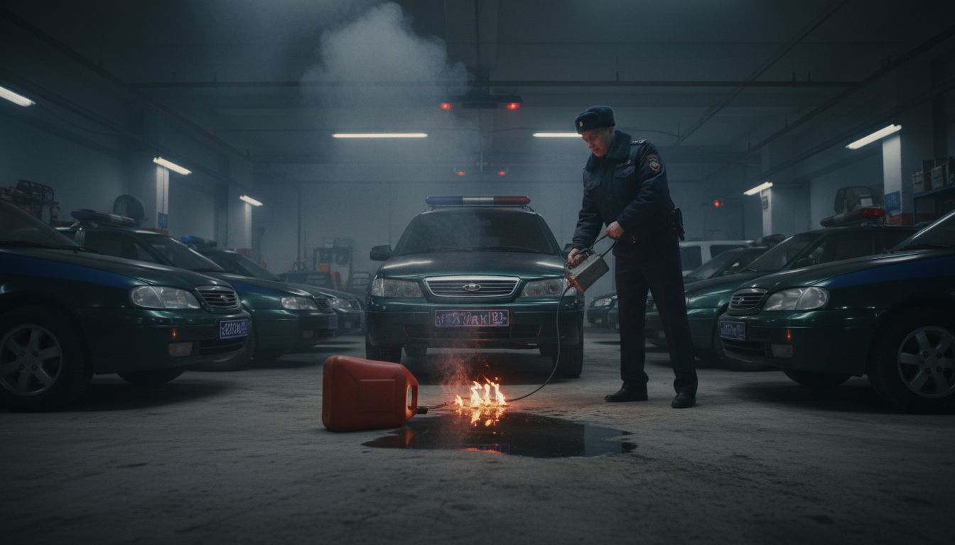 Полицейский поджёг служебные машины, пытаясь украсть бензин