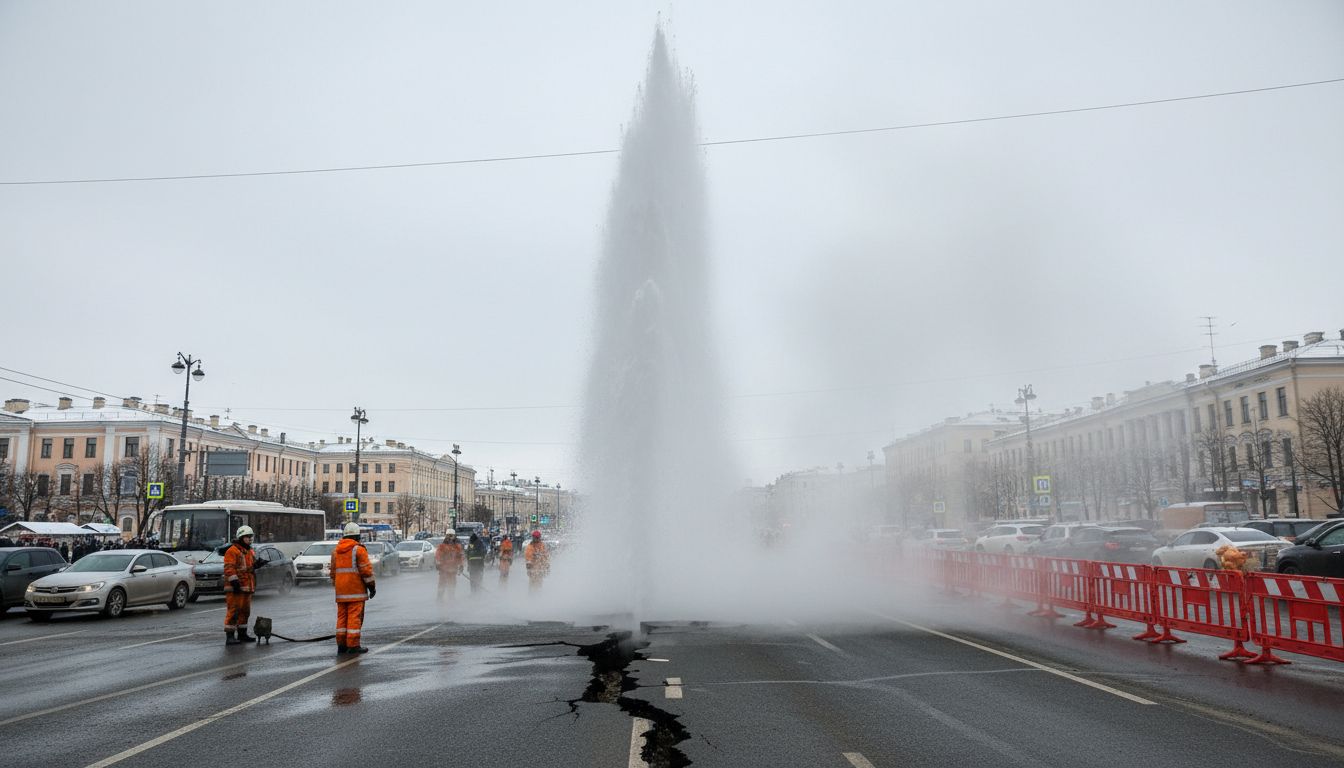 Гейзер кипятка хлынул на проспекте Большевиков