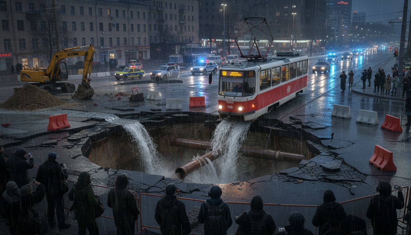 Кипяток затопил улицу Бассейную — машины проваливаются под землю