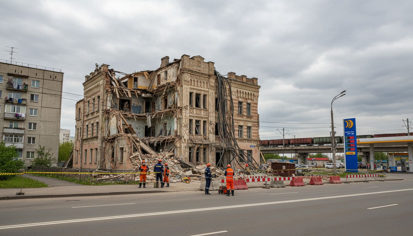 Демонтаж аварийных конструкций идёт на историческом здании, признанном аварийным ещё в 2010 году