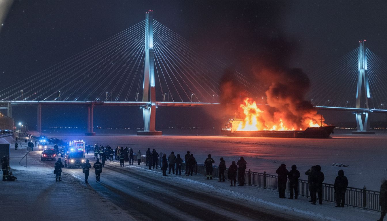 В Петербурге загорелось судно у вантового моста — экстренные службы на месте