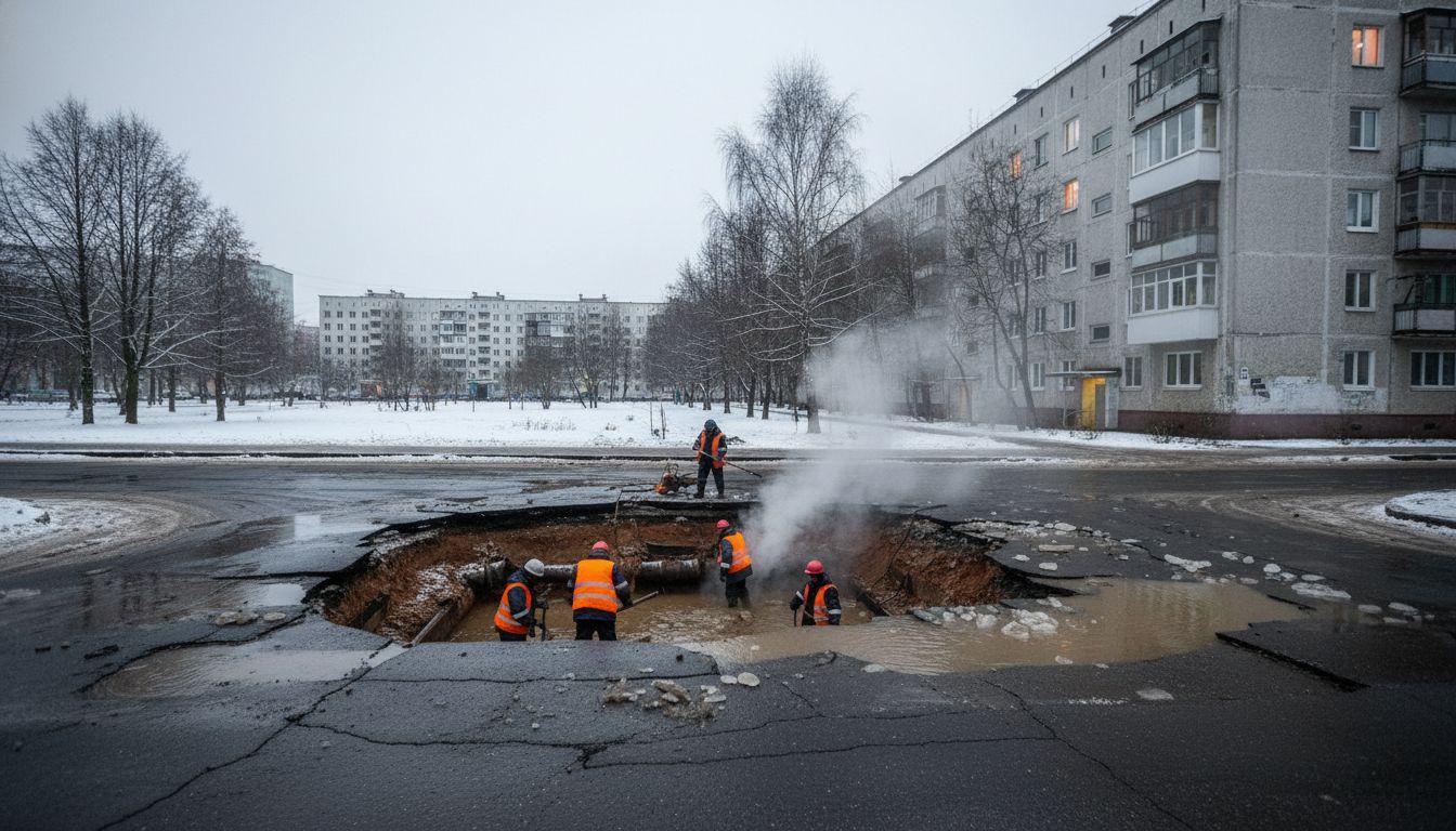 Водоканал устраняет аварию на трубе диаметром 200 мм, жильцы сообщают о затоплении подвалов